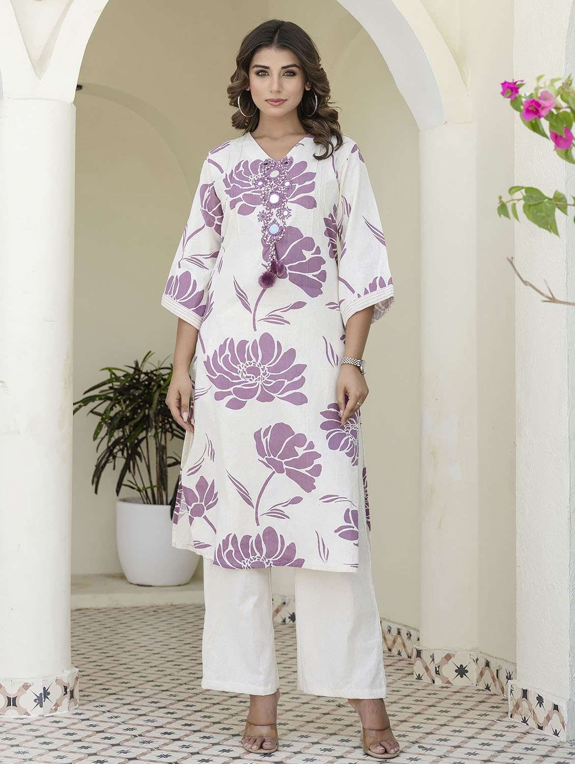 - » women floral three quarter sleeve kurta pant set