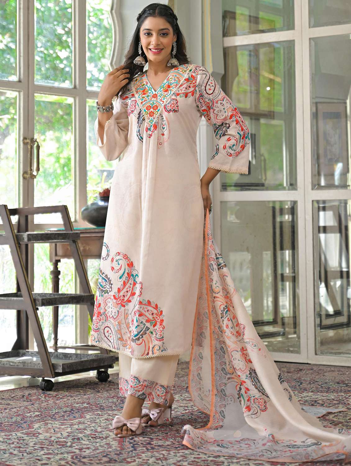 - » women paisley printed long sleeve kurta pan with dupatta set