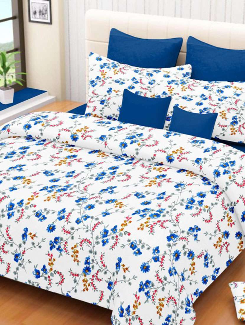 - » valtellina floral white cotton double bed sheet with 2 pillow cover - tc-250