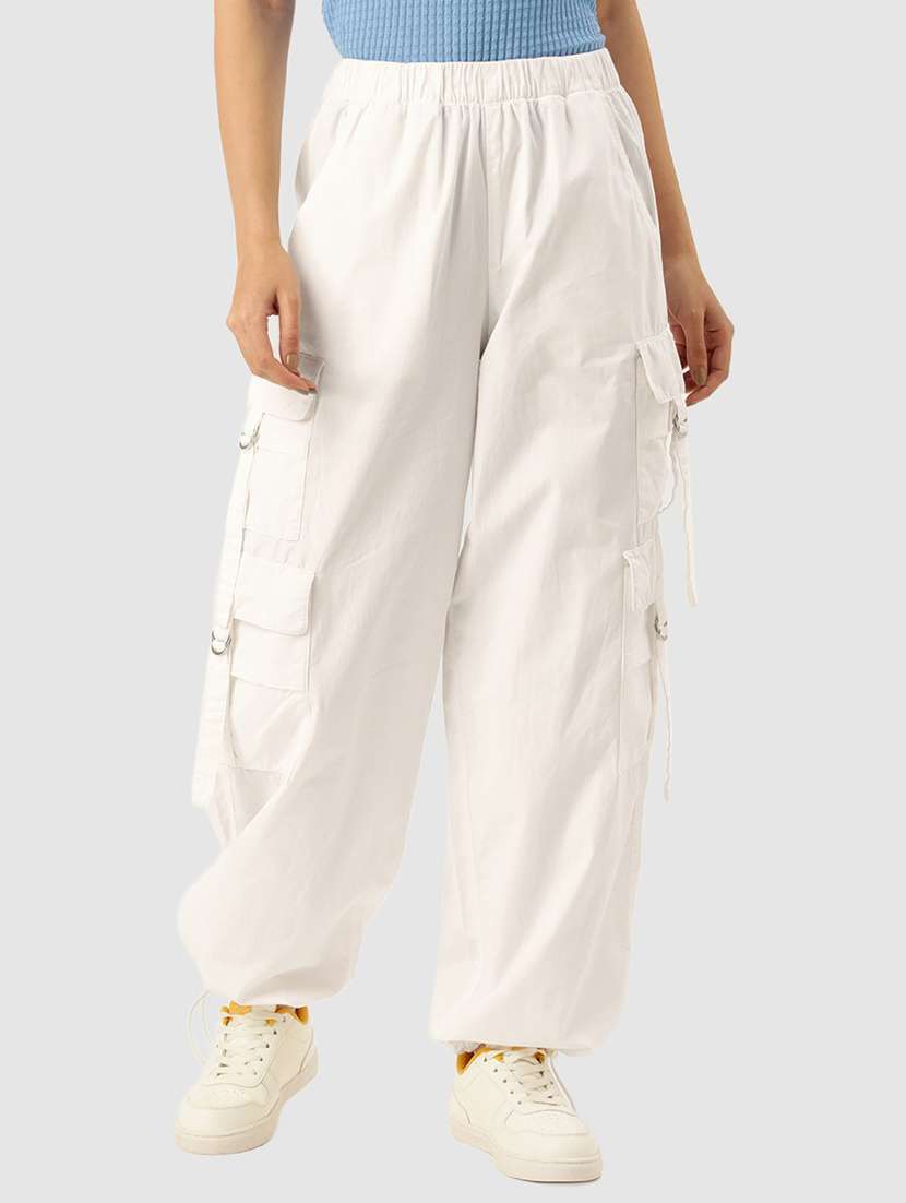 Introducing the BeneKleed Relaxed Fit Trousers, a must-have addition to your casual wardrobe. These trousers are made from 100% cotton, ensuring maximum comfort and breathability throughout the day. The solid white color is effortlessly chic and versatile, allowing you to pair them with a variety of tops and create stylish outfits for any occasion.