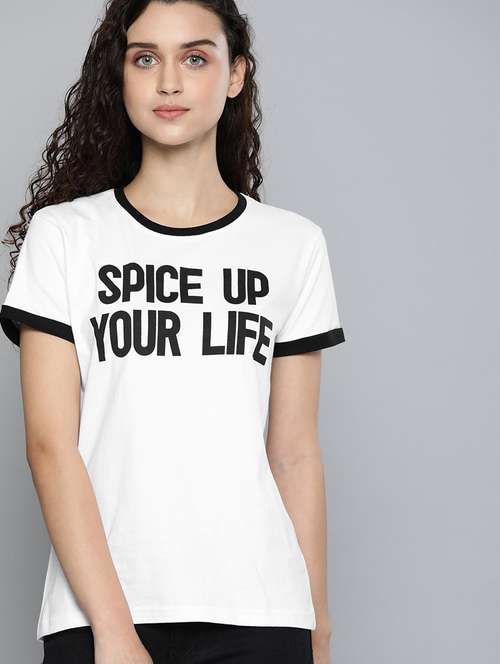 - » women white typographic round neck regular t-shirt