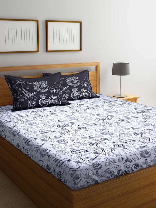 - » 100% mercerized cotton double bedsheet with 2 pillow covers