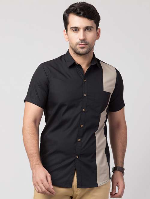 - » grey color block casual shirt