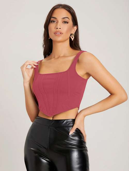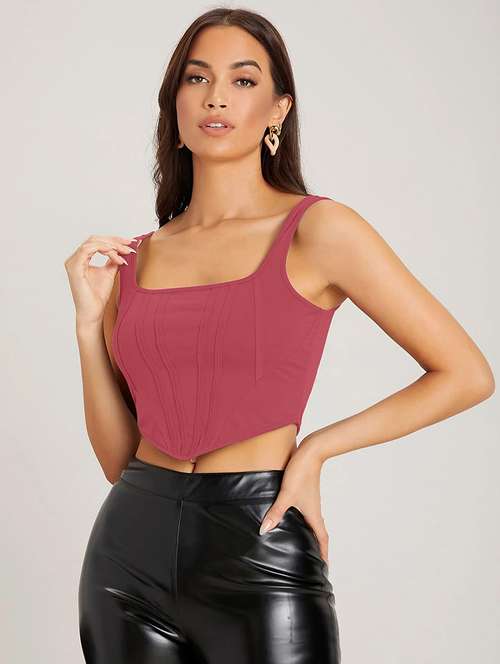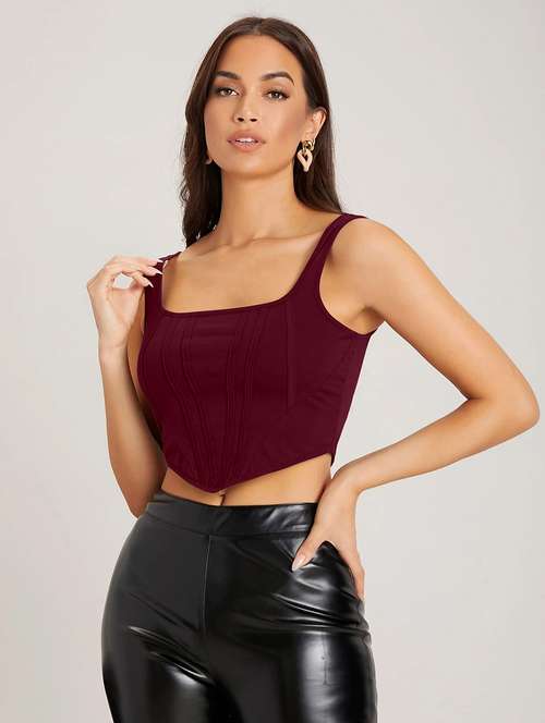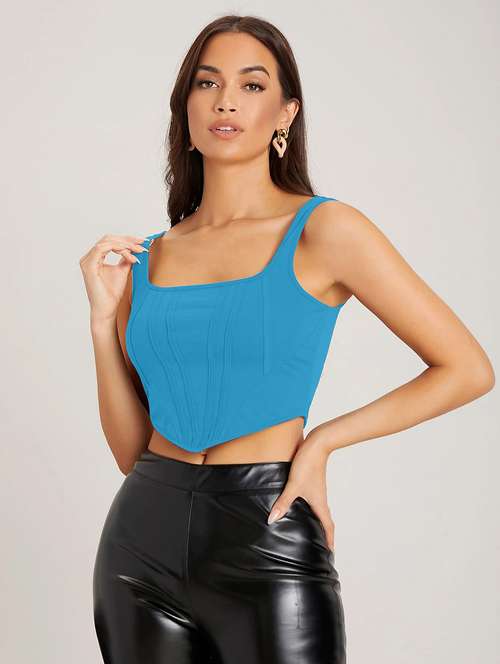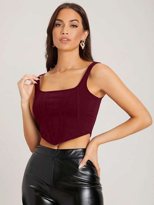- Opt for this top made up of cotton blend material and get it in a varied neck design.