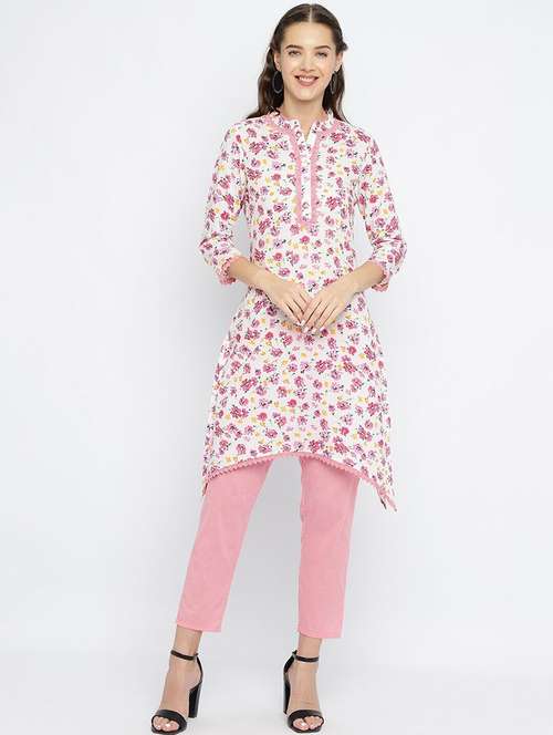 - » women floral mandarin neck a-line kurta