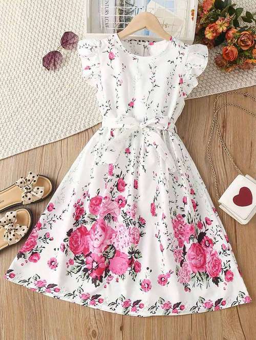 girls floral printed fit & flare dress - 21691088 - Very Small Image - 1