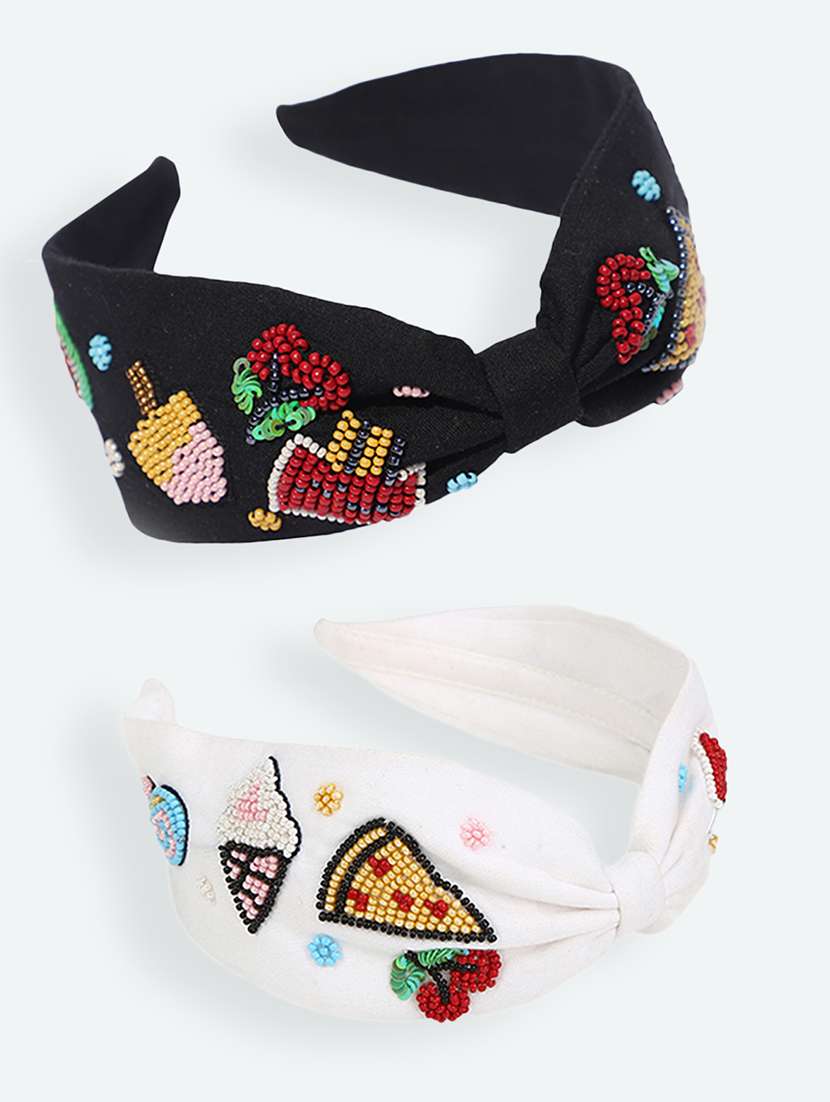 - » white & black embellished headband combo (set of 2)