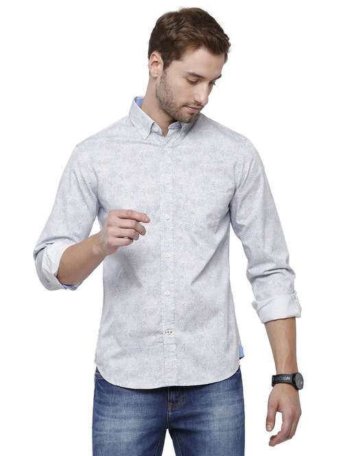 white cotton blend casual shirt