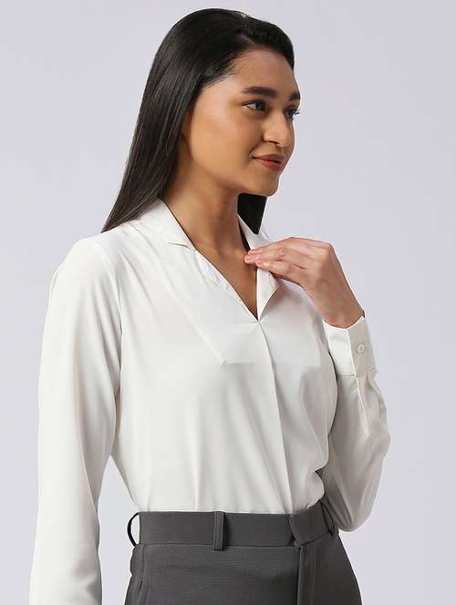 - » women white cotton blend shirt top