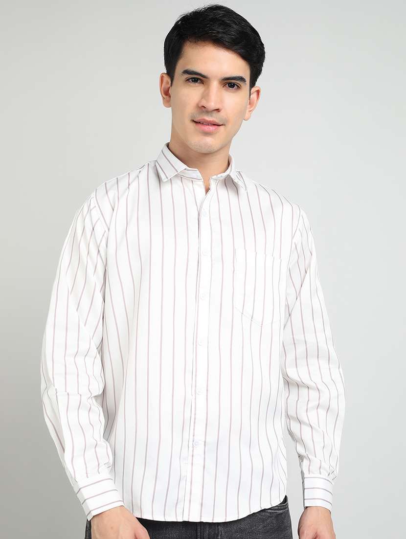 men striped collared long sleeves casual shirt