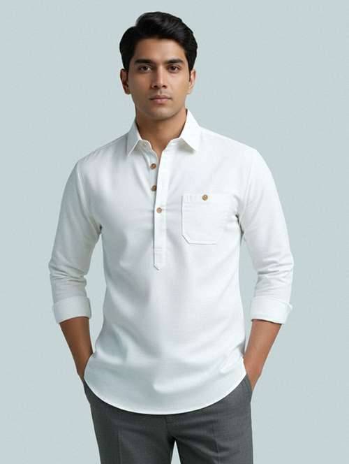 - » men solid long sleeve short kurta