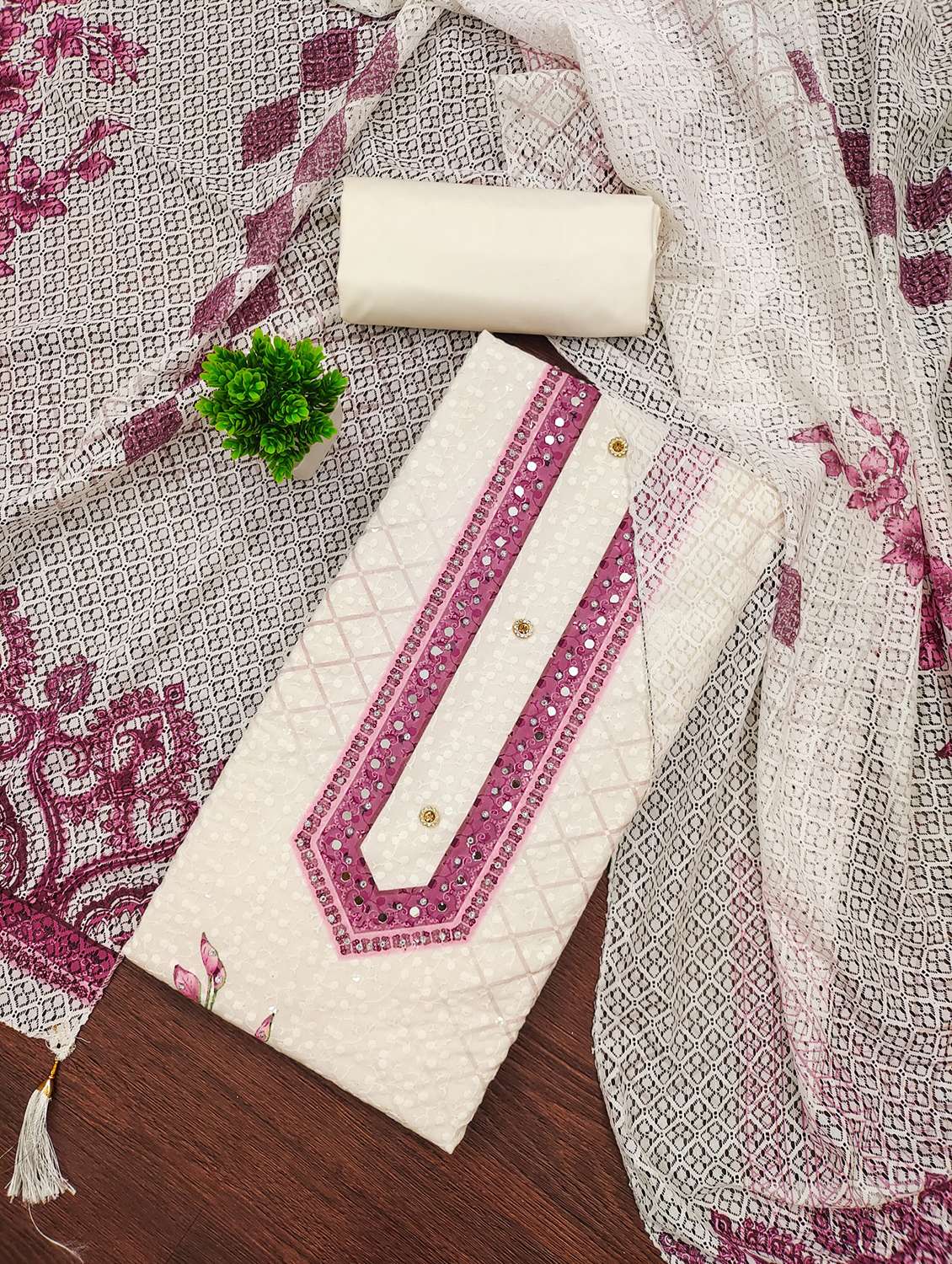 - Look ultra gorgeous in unstitched suits from Leeli Peeri Designer and grab these beautiful suits in white colour.