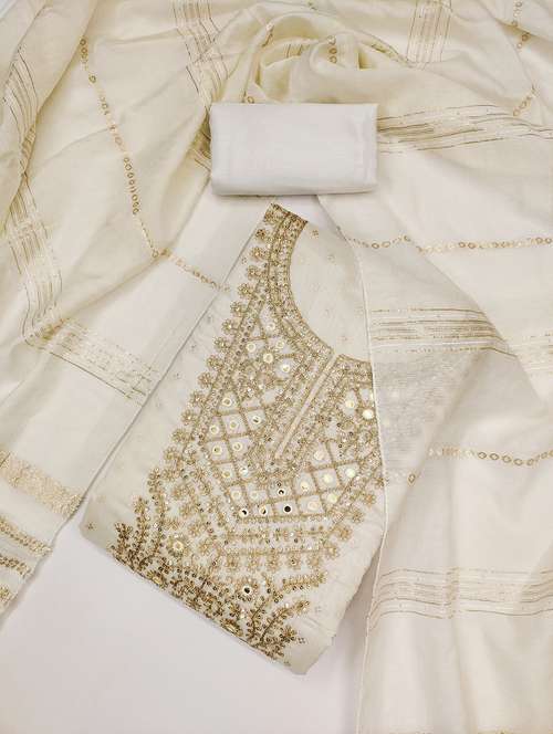 - Look ultra gorgeous in unstitched suits from Leeli Peeri Designer and grab these beautiful suits in white colour.