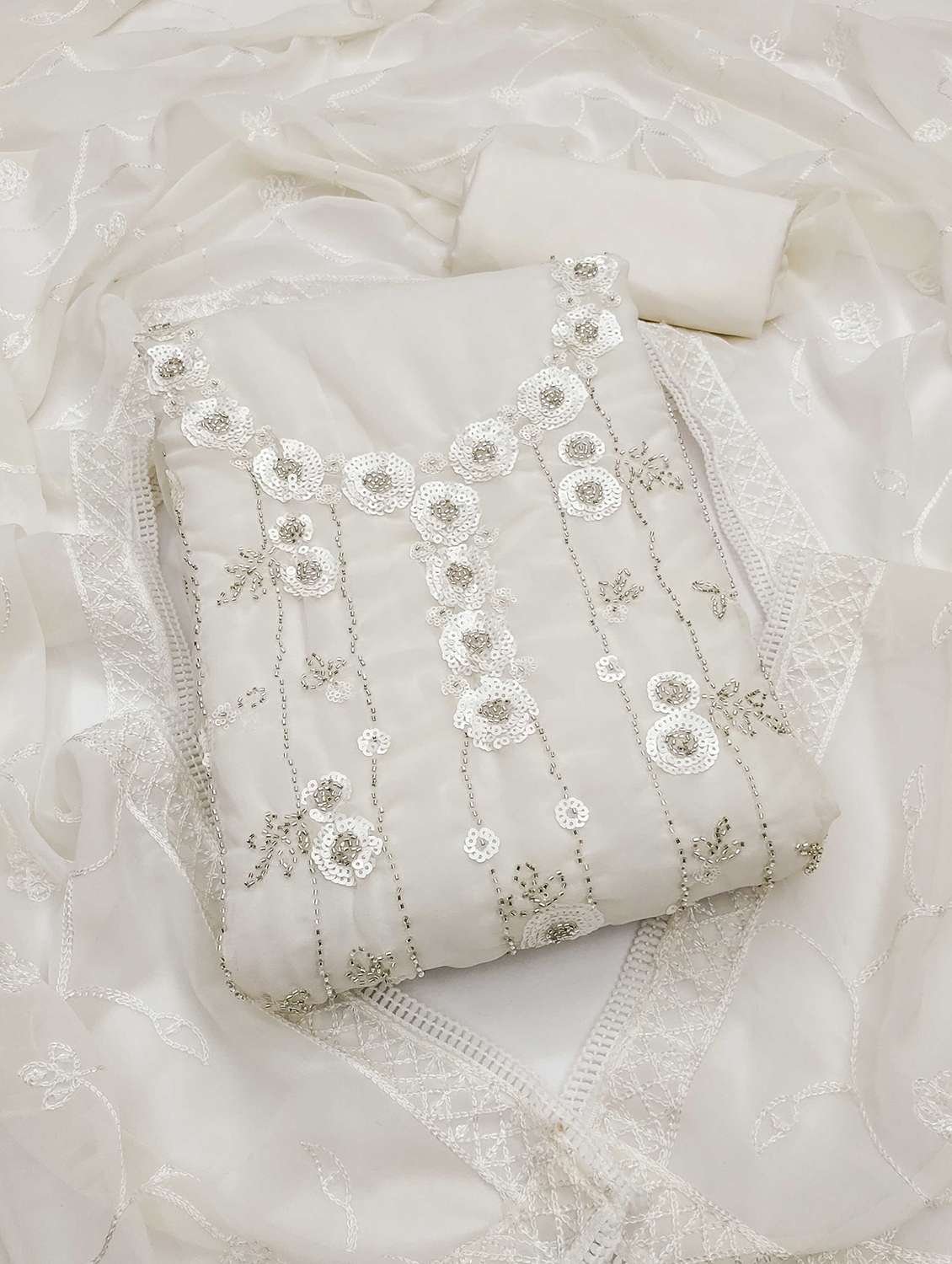 - Look ultra gorgeous in unstitched suits from Leeli Peeri Designer and grab these beautiful suits in white colour.