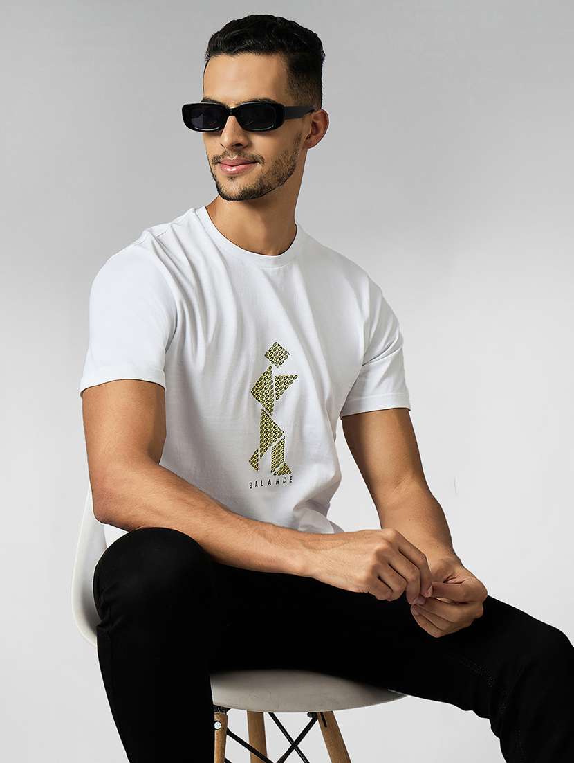 men front print round neck regular fit t-shirt