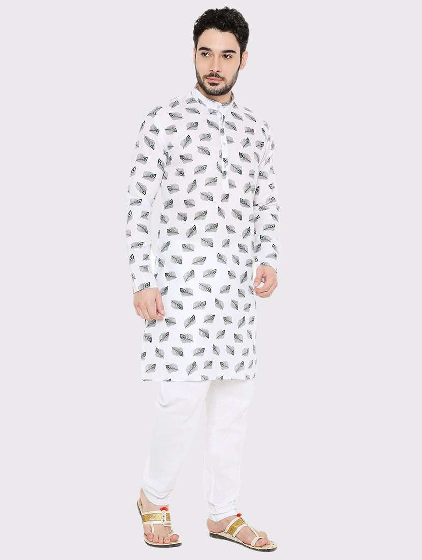 - » men printed mandarin neck long kurta