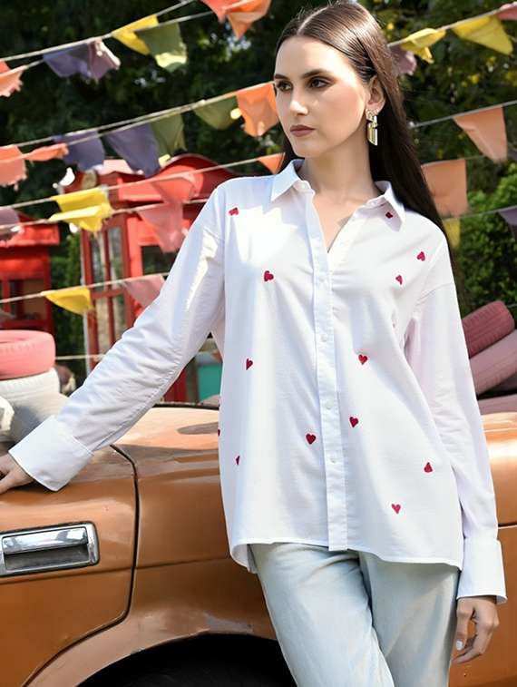 women printed collared long sleeve shirt