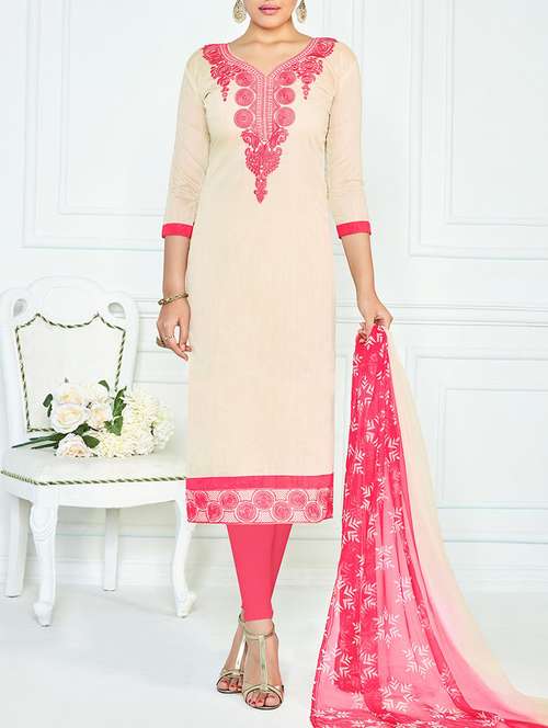 - » white cotton blend semistitched suit