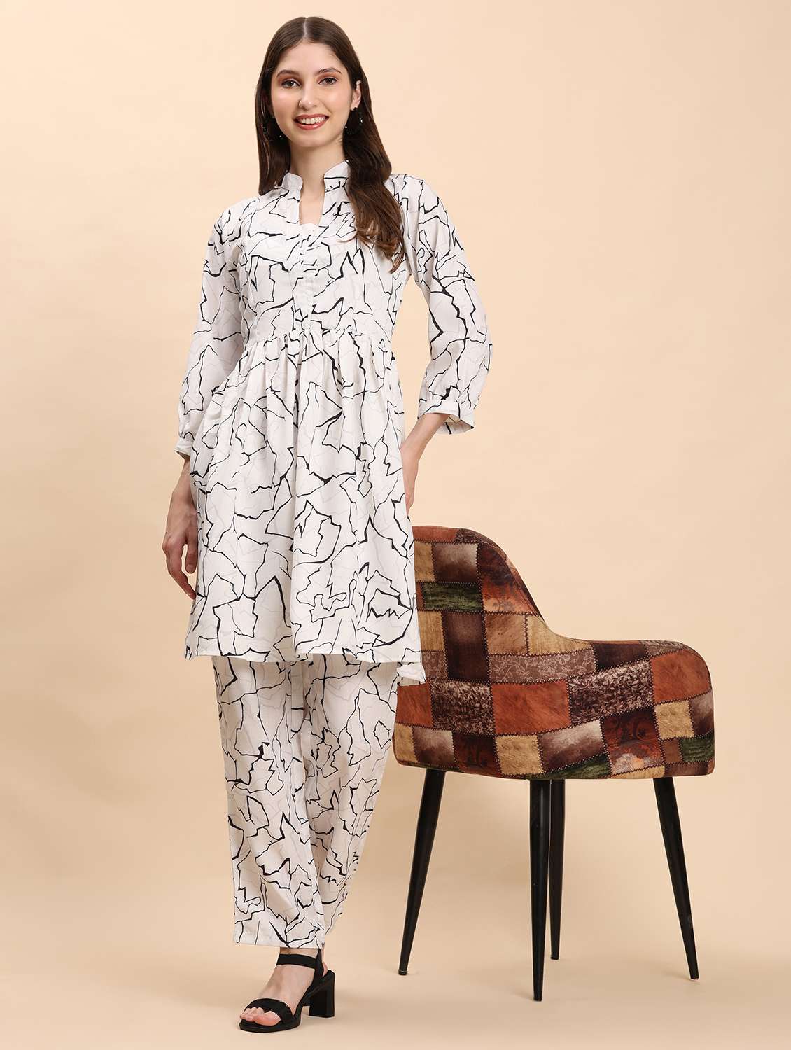 - » women printed three quarter sleeve co-ord set