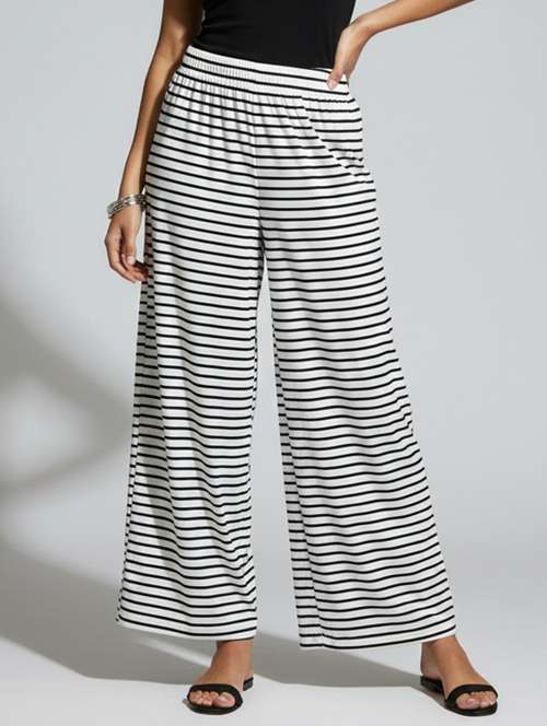 women striped high rise flared palazzo - 22398128 -  Standard Image - 1 women striped high rise flared palazzo - 22398128 -  Zoom Image - 1
