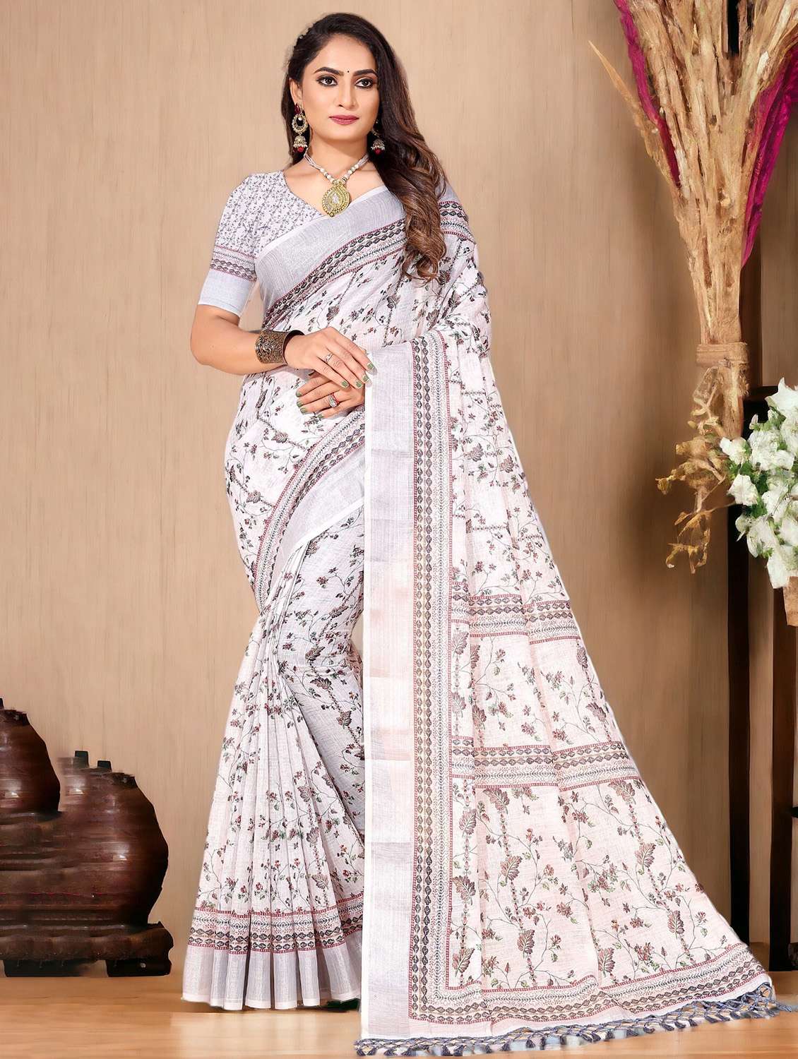 women floral printed saree with blouse