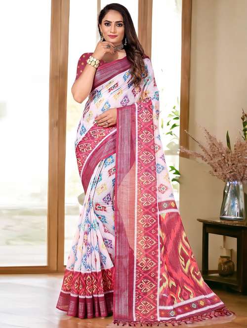 women white printed saree with blouse