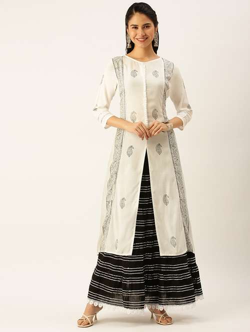 - Find gorgeous sets of ethnic wears in trending designs in white colors suitable for casual wear of occasions.