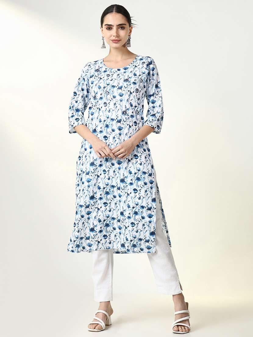 - » women floral printed three quarter sleeve straight kurta