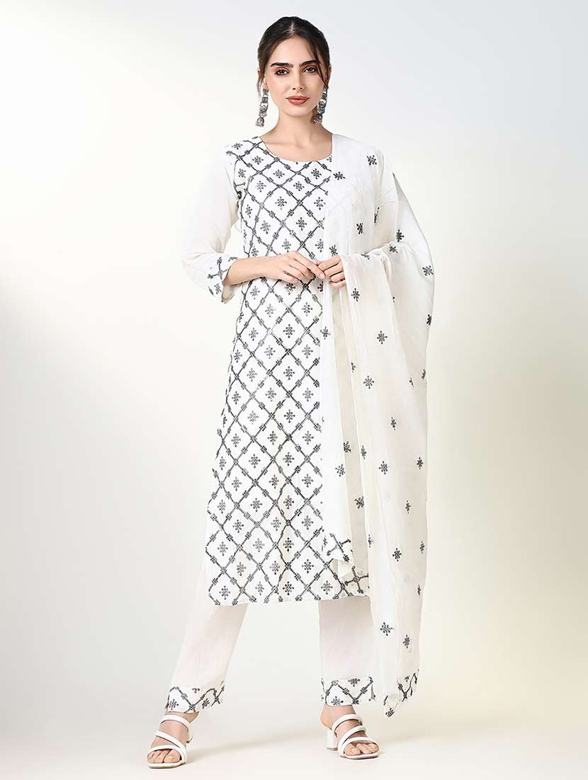 women three quarter sleeve kurta pant with dupatta set