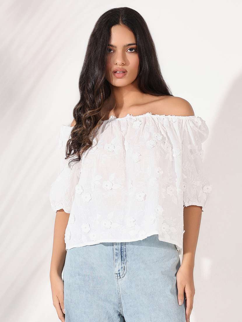 women self designed off shoulder regular top