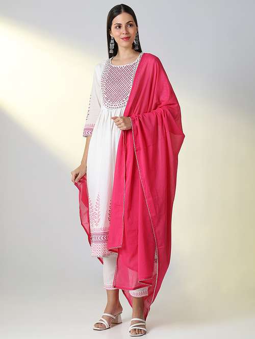 - Find gorgeous sets of ethnic wears in trending designs in white colors suitable for festive wear of occasions.