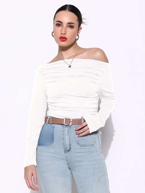 - » women long sleeves off shoulder ruched top