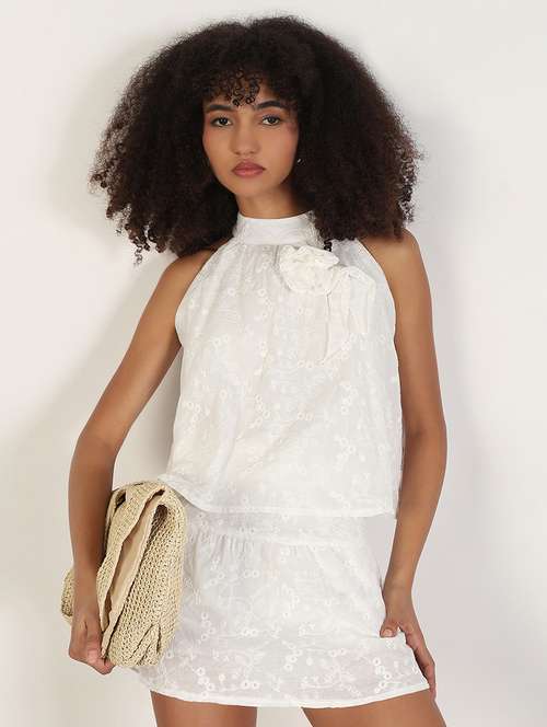 women embroidered top and skirt co-ord set
