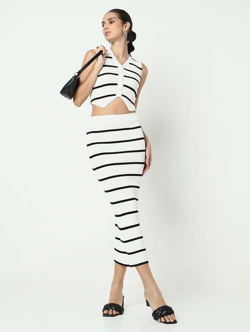 - » women striped crop top and skirt co-ord set