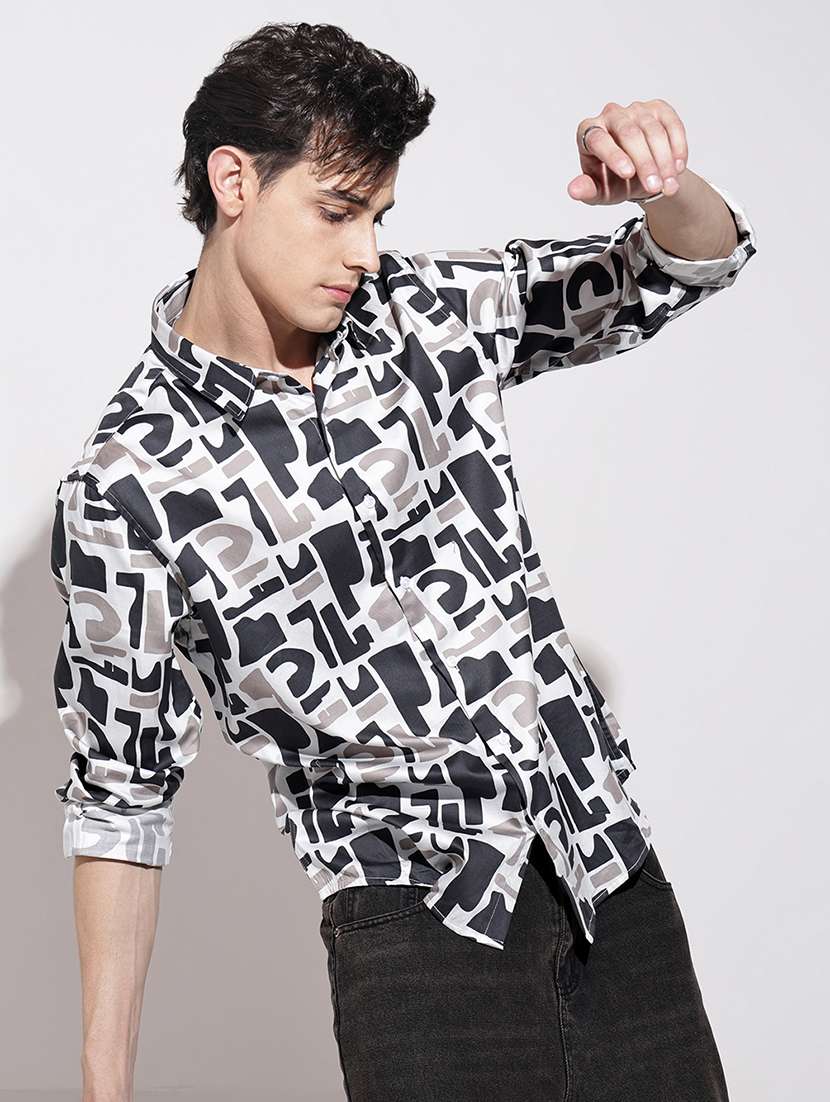 men printed long sleeve regular fit casual shirt
