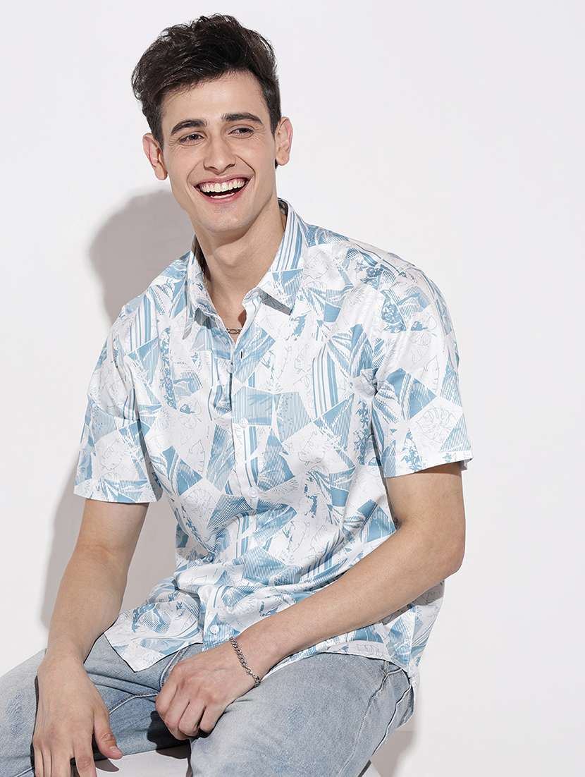 men printed short sleeve regular fit casual shirt