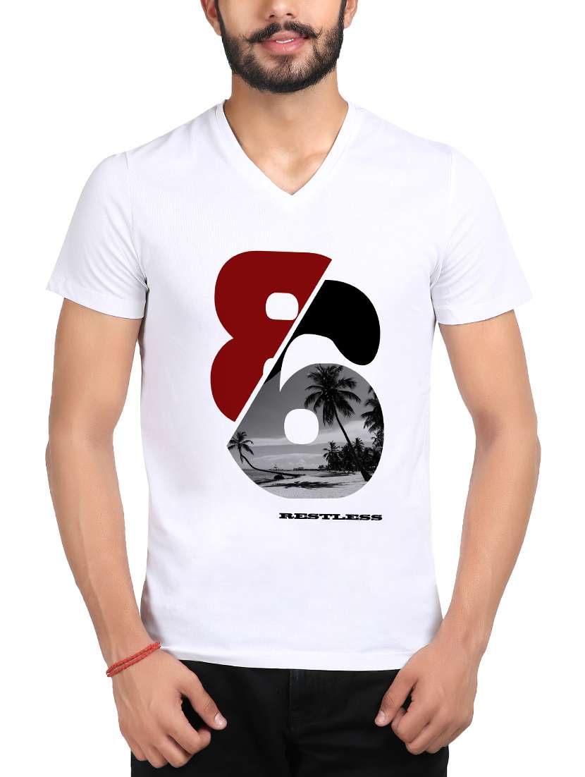 white cotton chest print tshirt