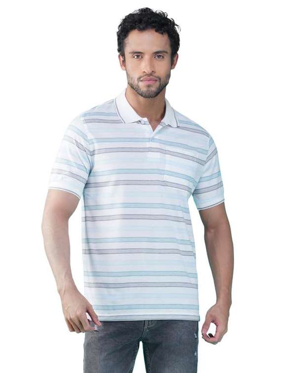 - » men striped short sleeves regular fit polo t-shirt