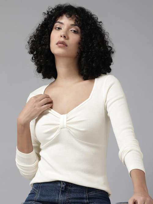 women off white solid long sleeve regular top - 21944567 - Very Small Image - 1