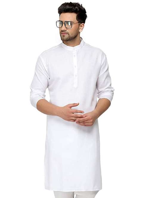 - » men solid white cotton blend long kurta