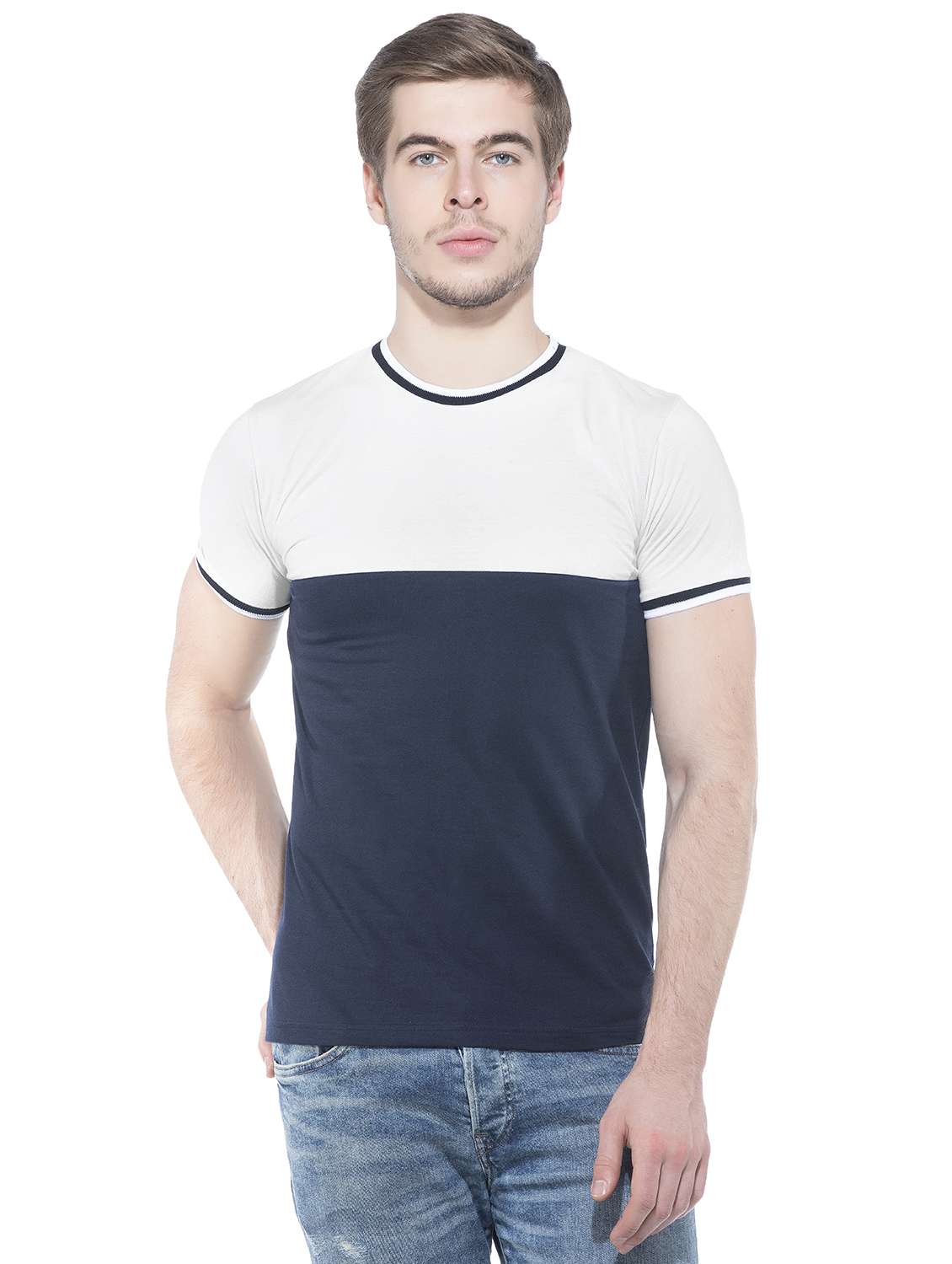 navy blue color block tshirt