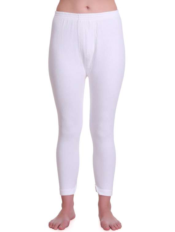 women solid white cotton blend thermal bottom