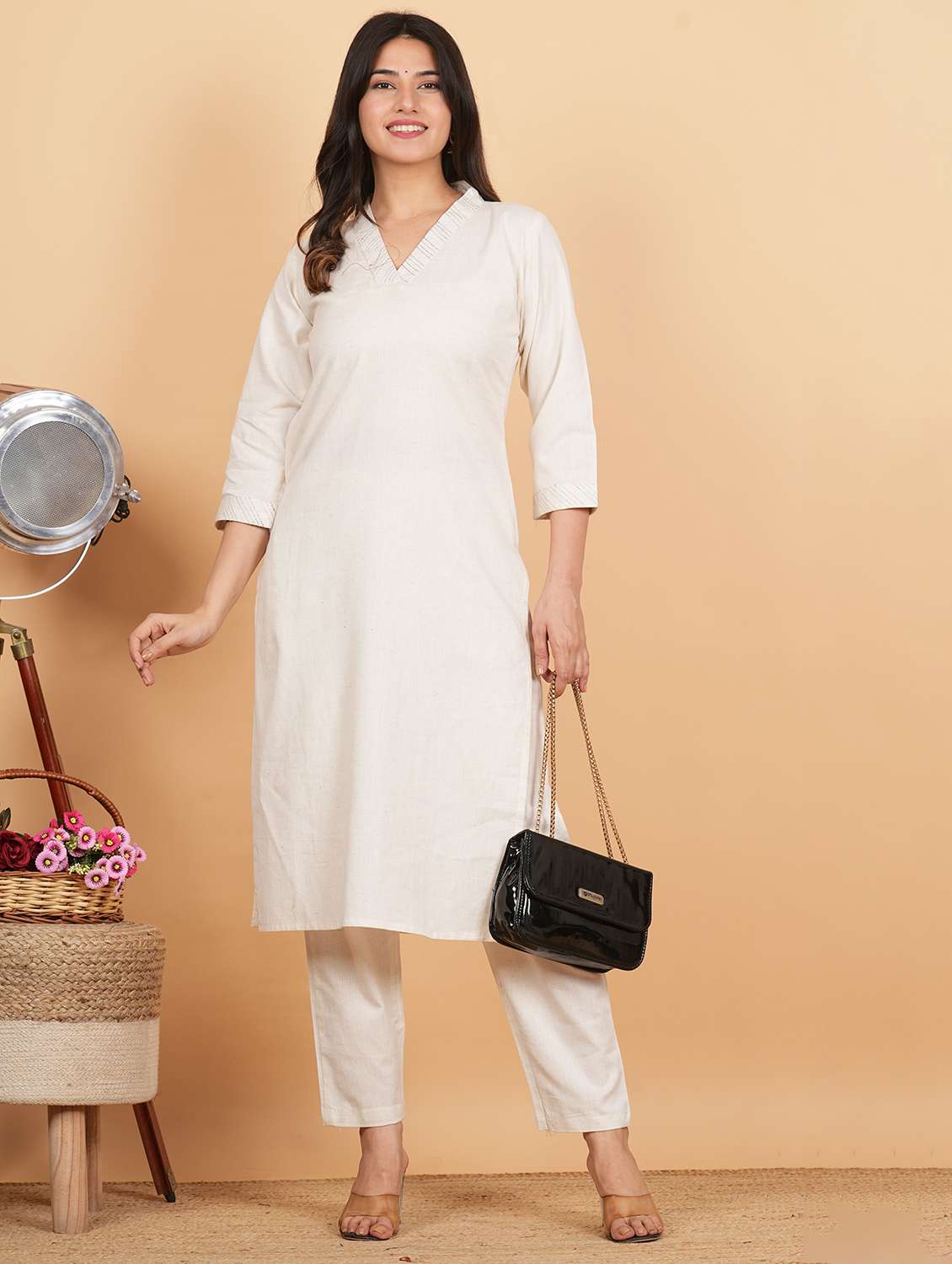- » women three quarter sleeve kurta pant set