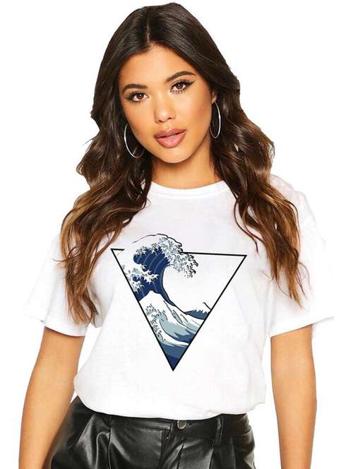 - » women white front print t-shirt