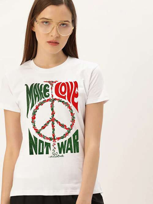 - » women white cotton blend front print t-shirt