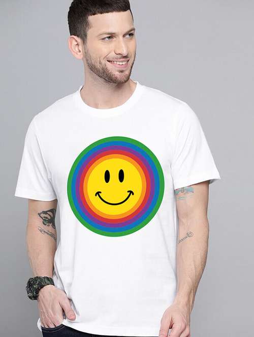 - » men white front printed t-shirt