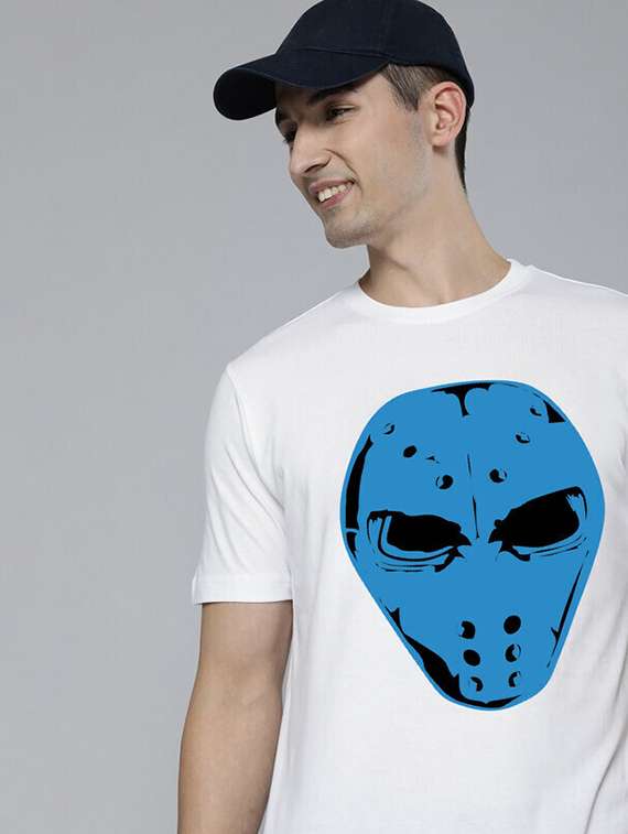 - » men white front printed t-shirt