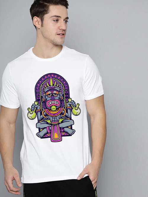 - » men white front printed t-shirt