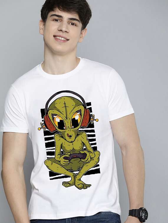 - » men white front printed t-shirt