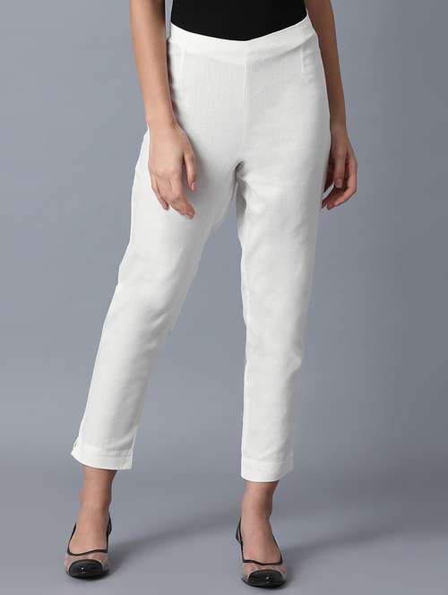 women mid-rise solid flat front trouser